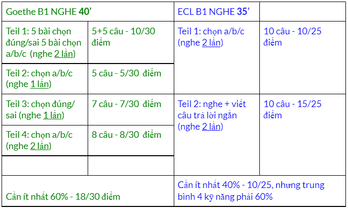 Format của ECL có thể sẽ khó hơn cho một số bạn ở phần teil 2 không chép kịp những gì mình nghe được. Tuy nhiên, các câu trả lời ngắn thường là 1-4 từ và bạn được nghe lại 2 lần. Từ nhận xét của 6 học sinh thi ECL, thì bù lại format khó hơn, câu hỏi và nội dung Text dễ hơn Goethe rất nhiều, không có các câu hỏi xoắn.