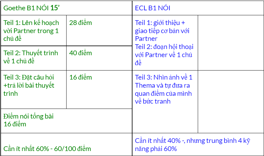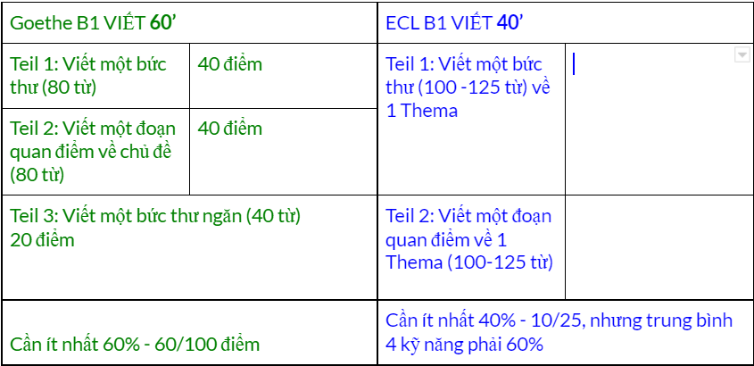 Phần viết của 2 bên tương đối giống nhau, về cả format và độ khó. Các bạn đã thi Goethe B1 Viết mà muốn thi ECL B1 Viết thì hãy lưu ý về thời gian nhé, chỉ có 40 phút thôi.